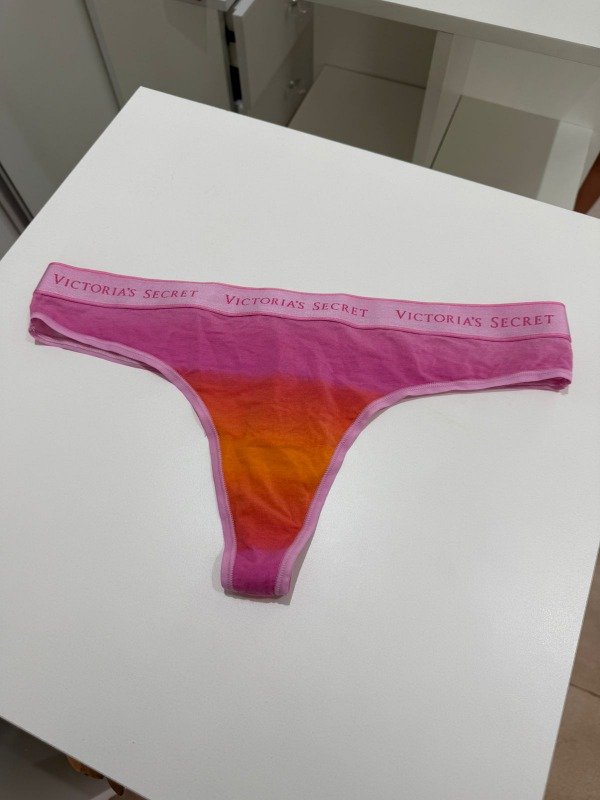 VICTORIA SECRET- Tanga logo cotton rosa con degrade.