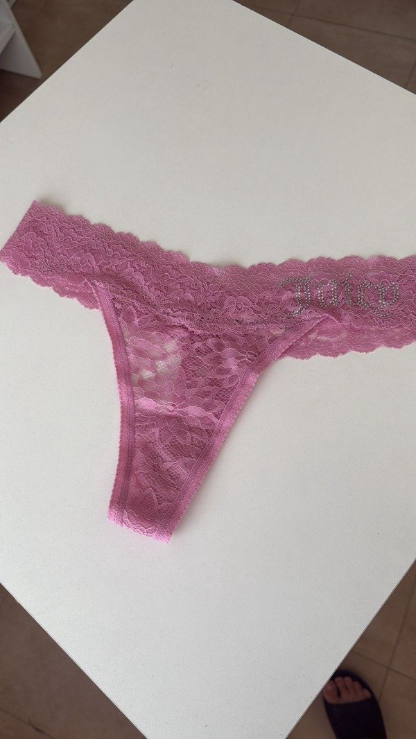 JUICY COUTURE- Tanga encaje con nombre en piedras rosa viejo.